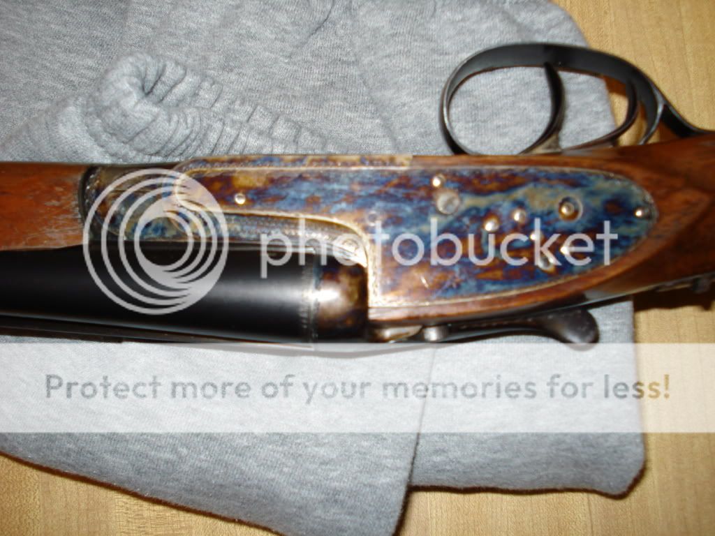 Hi, about 1yr ago I found a Arrizabalaga 28bore SLE in a small country gun shop. I also found a really nice french guild 16ga hammer gun in that same town. It is the last place you expect to find cool doubles, but it seems to produce from time to time. I bought it for a song, and it is a great little gun. He didn't know what he had, and the only reason I did was because a few years ago when I got into doubles I read the book Spanish Best. The wood is very plain, but the colors are great, and it is very tight. It has a little engraving around the borders, but not much. It is a pistol grip, semi beavertail forearm. I date the gun at 1962. It has no model number, and I can't seem to find out anything about it online. Doe's anyone have an older Arrizabalaga? I would like to know what model it is, ball park what it is worth? The locks are very well done, and the wood to metal fit is great. Stamped on the left side lock it says confederated arms. It has to be the importer name. One top of the barrels, and the reciever flat it says Pedro Arrizabalaga. In the picture I didn't have the lock plate tight so the lever is not where it should be. The pictures don't do the gun justice, but I'm no photographer.