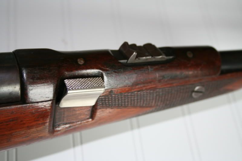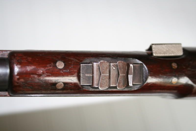 Grogel - I'll bet if this was a Savage, you wouldn't be asking these technical questions ;). The front lever is the "Harris lever" which you press down as you load the magazine. It takes the pressure off so you can drop them easily. The lever by the trigger is a magazine cut-off. You click that and it hold the cartridges down so the rifle can be single-loaded and as you cycle the bolt, the top cartridge isn't stripped off. The "transition" aspect of this rifle is not related to a transition to military. Rather, it is a transition from the M1900 action to the M1903 action. When I get a chance, I will post pictures of a M1903 actioned sporter (made in Quebec).