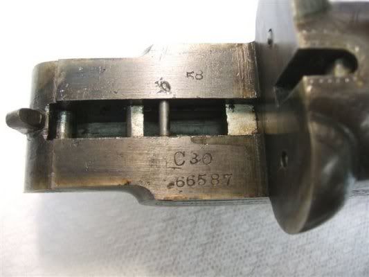 Sometimes on the rib you may see Crystal or Armory or even Krupp. For the most part, if you remove the barrels and look at the watertable they are marked with the model, barrel type and length and serial number. The barrel type can be T=Twist, D=Damascus, S=Steel, K=Krupp, C=Chain Damascus. This coding is not found on some of the very early guns. On some of the very late guns it becomes a bit of a hit and miss.