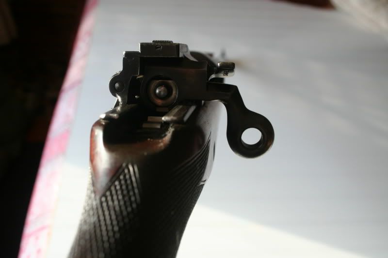 The action was the basic model of 1910, and the changes were purely cosmetic. The U.S. model had an inch shorter length of pull, a somewhat narrower grip and a significantly higher comb. While still retaining the Schnabel, the forend sported a neater and trimmer appearance. The stock was patterned after a design the Ross Rifle Co. had solicited from Ludwig Wundhammer, who knew something about American taste in rifle stocks. Aside from stocking modifications, the bolt handle was turned down to closer to the side of the receiver, and the barrel length was reduced to 26 inches."Here is where I will insert what I know. First there is a variation of the M-10 that was made with a turned down bolt (I will post a picture shortly) (as an aside, I will mention that the turned down bolt appears on the experimental .280 Military Match rifle as well). This variation was made in 1912 - and it seems 1912 was the only year it was available. I have several of these. However, that is really the only way this variation is different from other M-10's. The M-10 could be had with a 26 or 28 inch barrel and the 26 inch barrel is not exclusive to the turned down bolt variation. The length of pull on the turned down bolt versions are not 1/2 inch shorter nor are the stock dimensions consistently different. Given the M-10 stock did not change, this leads me to believe that Wundhammer did not influence the design of the stock.