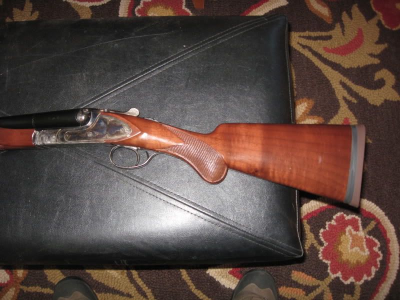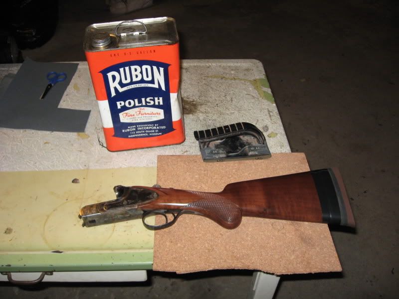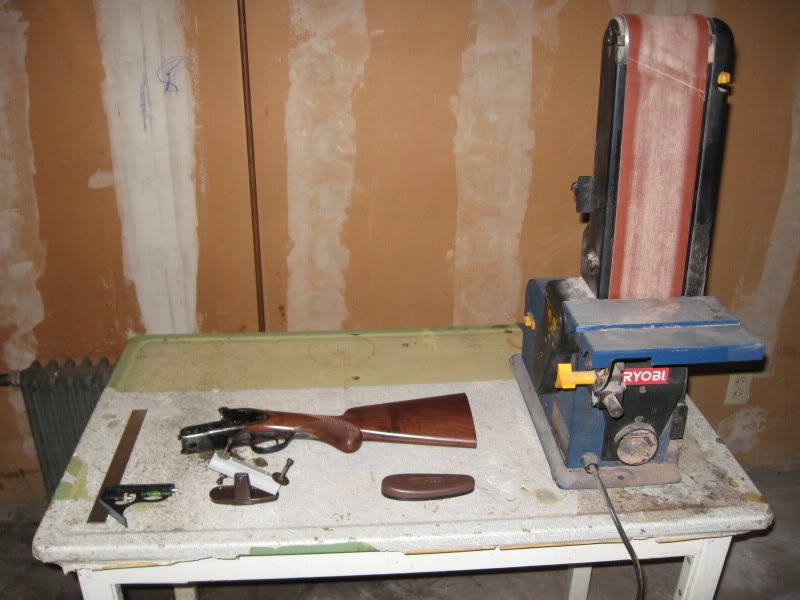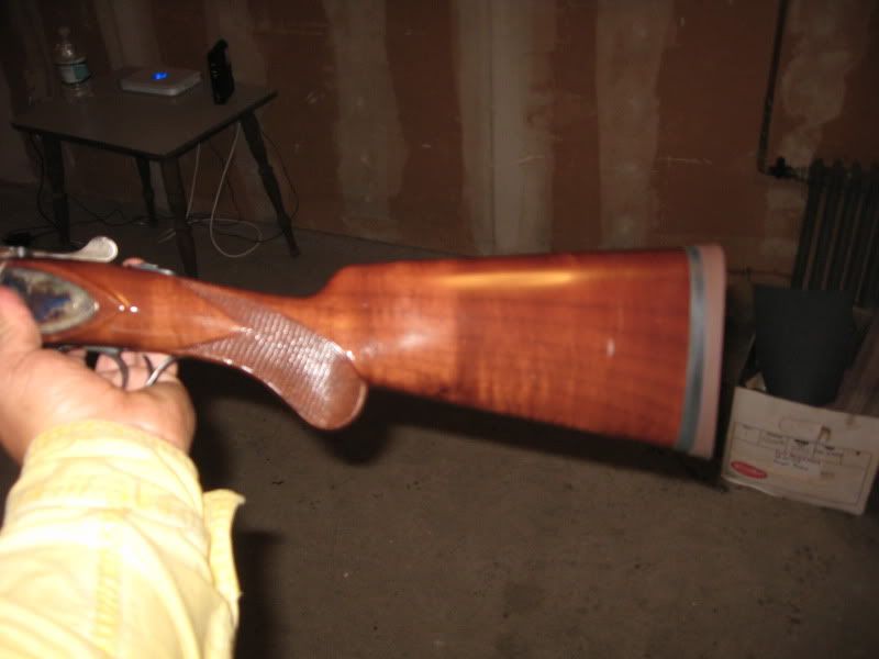 This evening I had to get my wife's gun finished for her duck hunting trip this weekend. I have been fitting the gun to her over the last week and had the pad left to install. Due to her gun fit I had to add a negative pitch spacer (thicker on the toe than the heel) to give her a setup of 60/40 pattern on the patterning board.