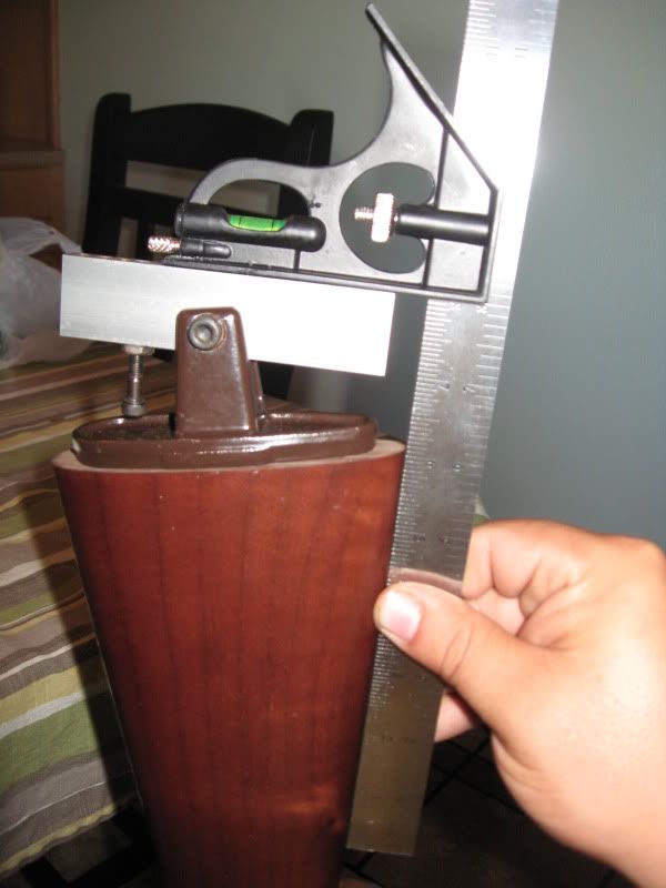 The bolt under the aluminum bar screws out until it bottoms out on the bottom of the jig. That is where you tighten it down for the correct heel pitch.