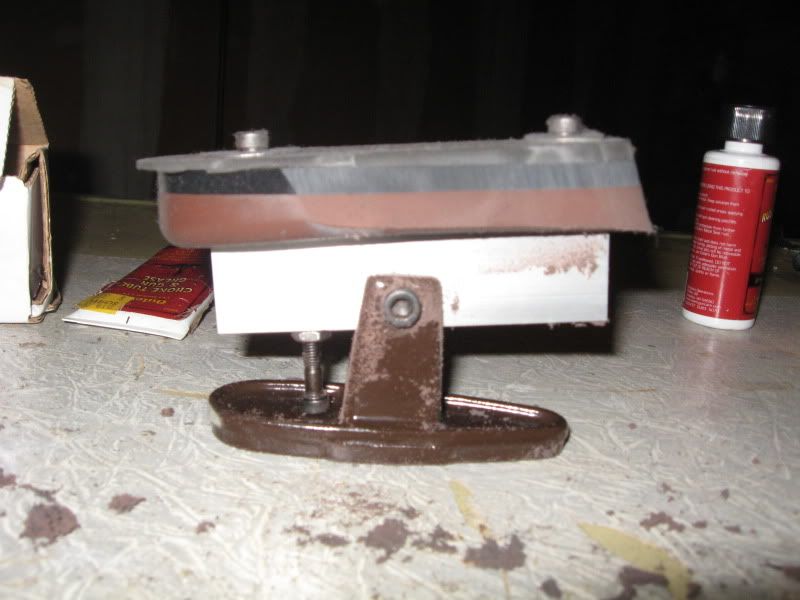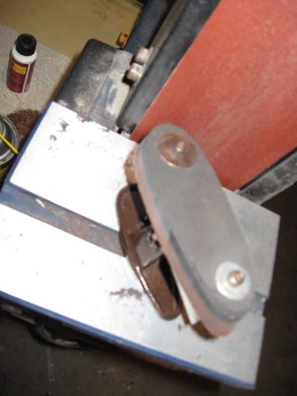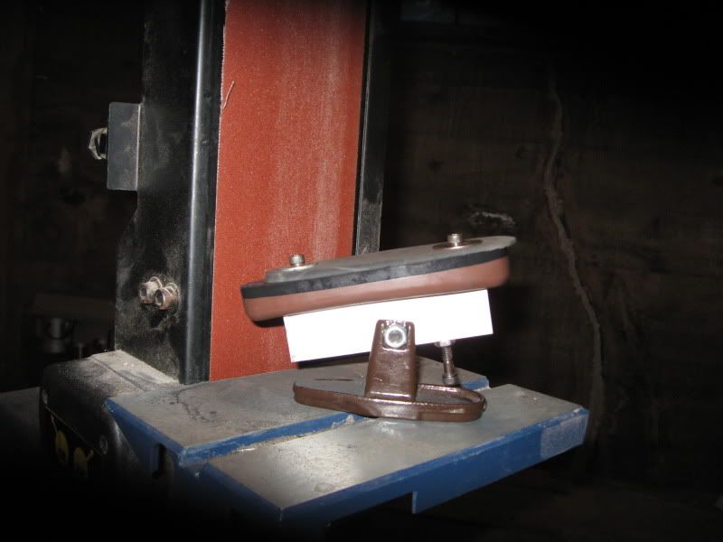 6. I now bolt the pad to the jig and begin to grind the toe of the pad.