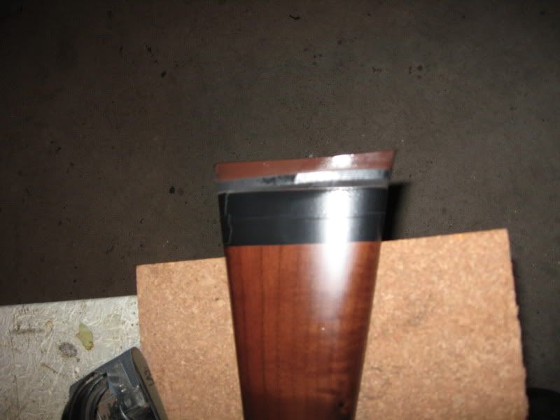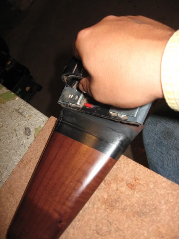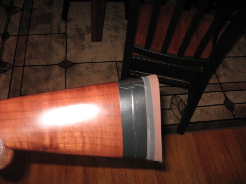 Then I reattach it to the stock which has had black electrical tape carefully wrapped around the stock to protect the finish during pad installation.