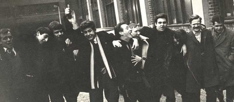 This photo from Trevallion's archives show the Purdey workmen returning to the factory to finish up the day of work after the annual christmas p***** at the Irongate Wharf pub. Photo by Bill O'Brian.