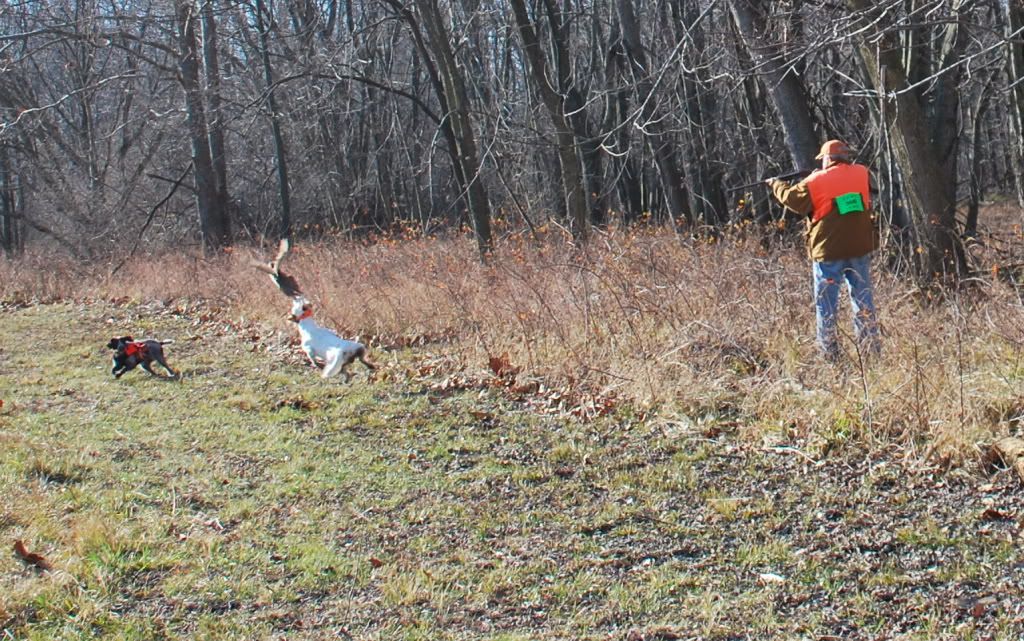 A small group of were hunting "put-n-take" pheasants yesterday at an Illinois DNR site (Carlyle Lake). My friend Dick was carrying his camera. Buddy, his white english setter, pointed a legal hen pheasant, and I moved in to take the shot.