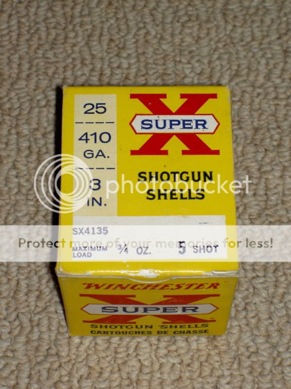 Let me tell you a story Once,I had a box of Federal 410 3" #7.5. Fella on the box had a Tam hat, cardigan sweater, etc. Nice old box and paper ammo. Tried to get my ammo collecting buddies to go to Wal-Mart and buy me a box of new 3" 410 ammo so I could dove hunt with the shells. OH NO!! they said, that would cost them WAY TOO MUCH !! So, after three years of asking, I used the old ammo to dove hunt and sold the EMPTY BOX on Ebay for $35.00  Mike