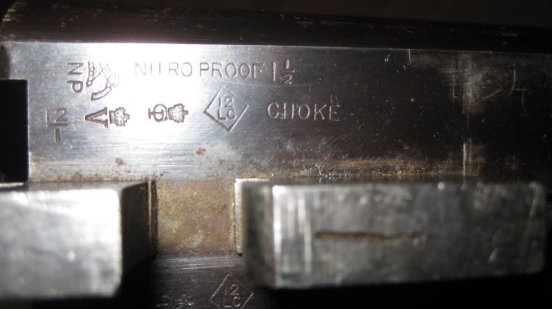 Mark--I date your gun from the period 1904-25. The NP with the sword was first used in 1904, and the 12 over LC was last used in 1925. (That latter mark should indicate that your gun has 3" chambers, which would also fit with the 1 1/2 oz shot charge.) After 1925, the chamber length would have been marked on the flats.
