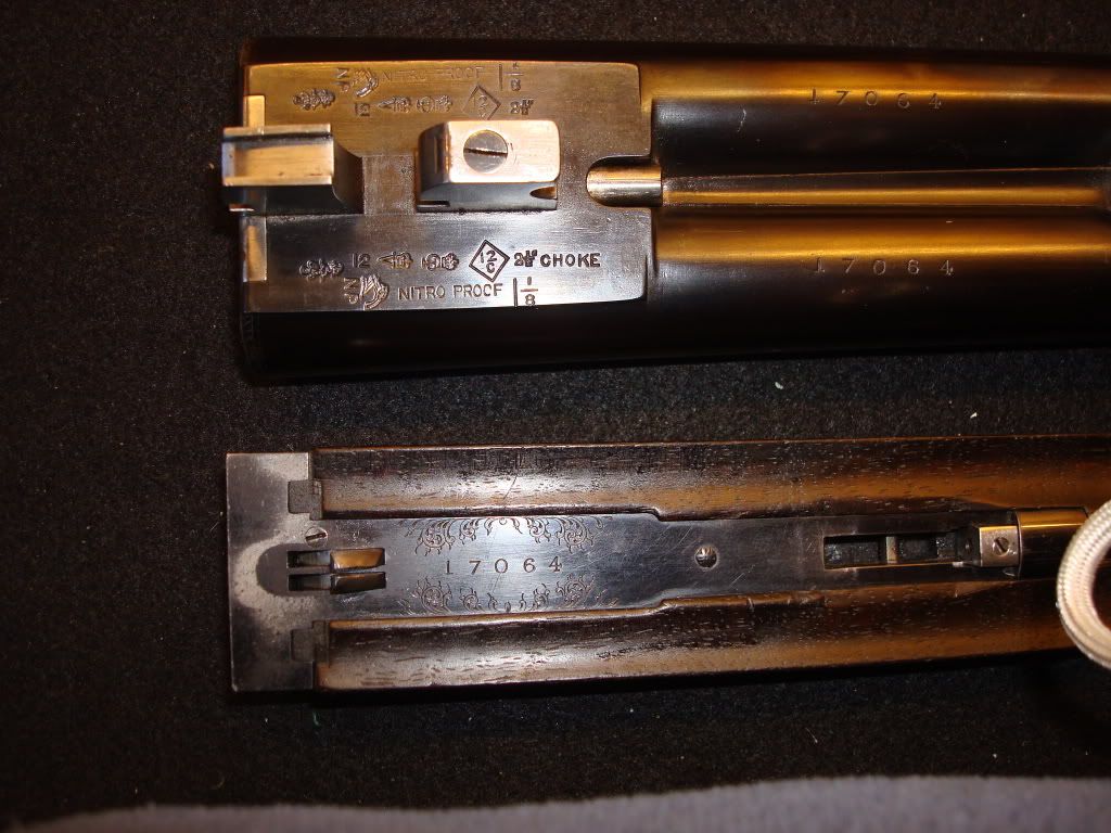 Grant took over the business of Charles Lancaster during the great depression. Presumably these guns, started by Lancaster, were part of the sale inventory. The guns have serial numbers in the Steven Grant series not Lancasters. I particularly like the engraving around the serial number on the inside of the fore end iron, something I have never seen before.