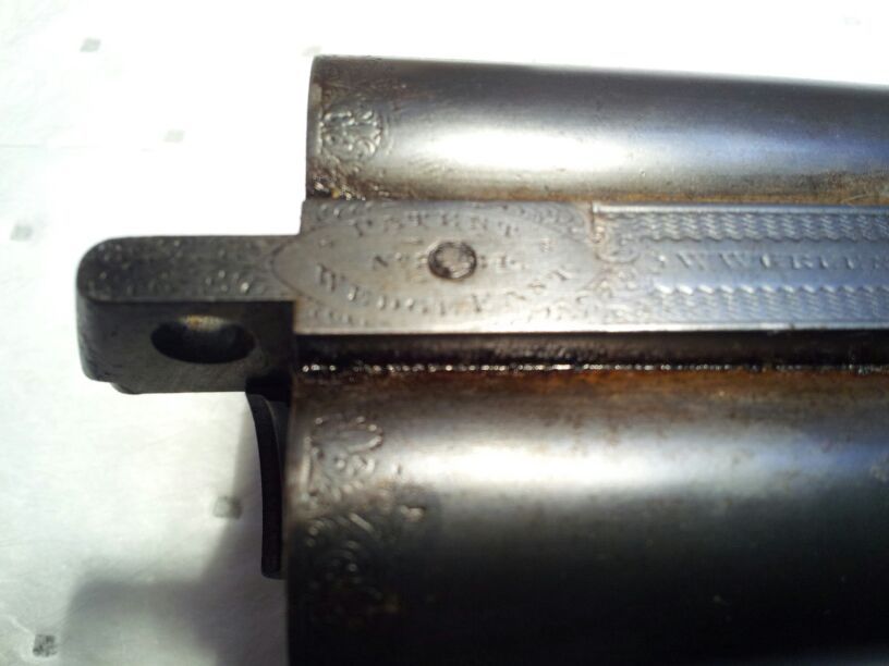 WITH THE SIDE ENGRAVING THAT MUCH WAS ONLY DONE ON THE "FACILE PRINCEPS" ACCORDING TO ALL THE GUNS PICTURED. WITH THE 27... SERIAL NUMBER IT MAKES IT ONE OF THE VERY EASIEST OF THIS MODEL. ALSO NOTE THE GOLD NOT ONLY IN THE WORD "SAFE" BU ALSO THE LITTLE BIT LEFT AROUND THE SAFE FRAME. ALSO I NOTE THE CHECKERING AT THE LOWER PORTION OF THE PISTOL GRIP THAT DOUBLE POINT IS ONLY SHOW TO BE ON THE "FACILE PRINCEPS" MODELS.