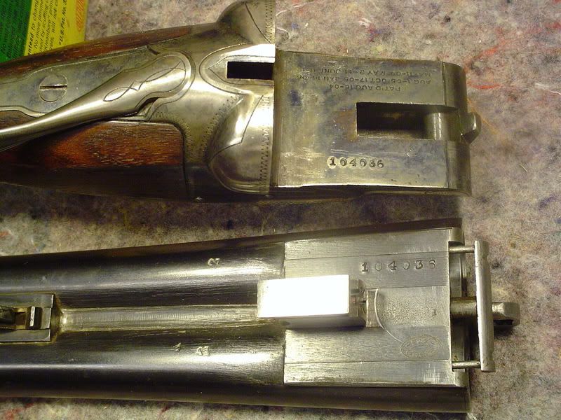 The deed is done, David it's #104036. Better condition than I first realized.The gun has been well cared for.Short chambers and MAX chokes in both barrels. It was nestled between an $900.00 Stevens 310 and a $1900.00 Parker-Hale with lopped off barrels at the local BPS!! Go figure.
