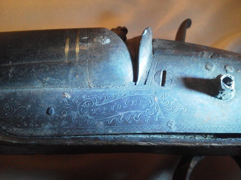 Recently my parents pulled out a W. P. Jones double barrel that was my great grandfathers. It is in rough shape after they found it in my grandmothers attic. I have never had a gun this old, much less one with inlay and engraving like this. If it's not really worth anything, I'd like to clean it up some and display it, but I dont want to do anything wrong if this gun might have some value. I'd also like to have an idea of the history of it (year, model, etc). My local shooting forum pointed me here for expert info. Thanks in advance for any help!