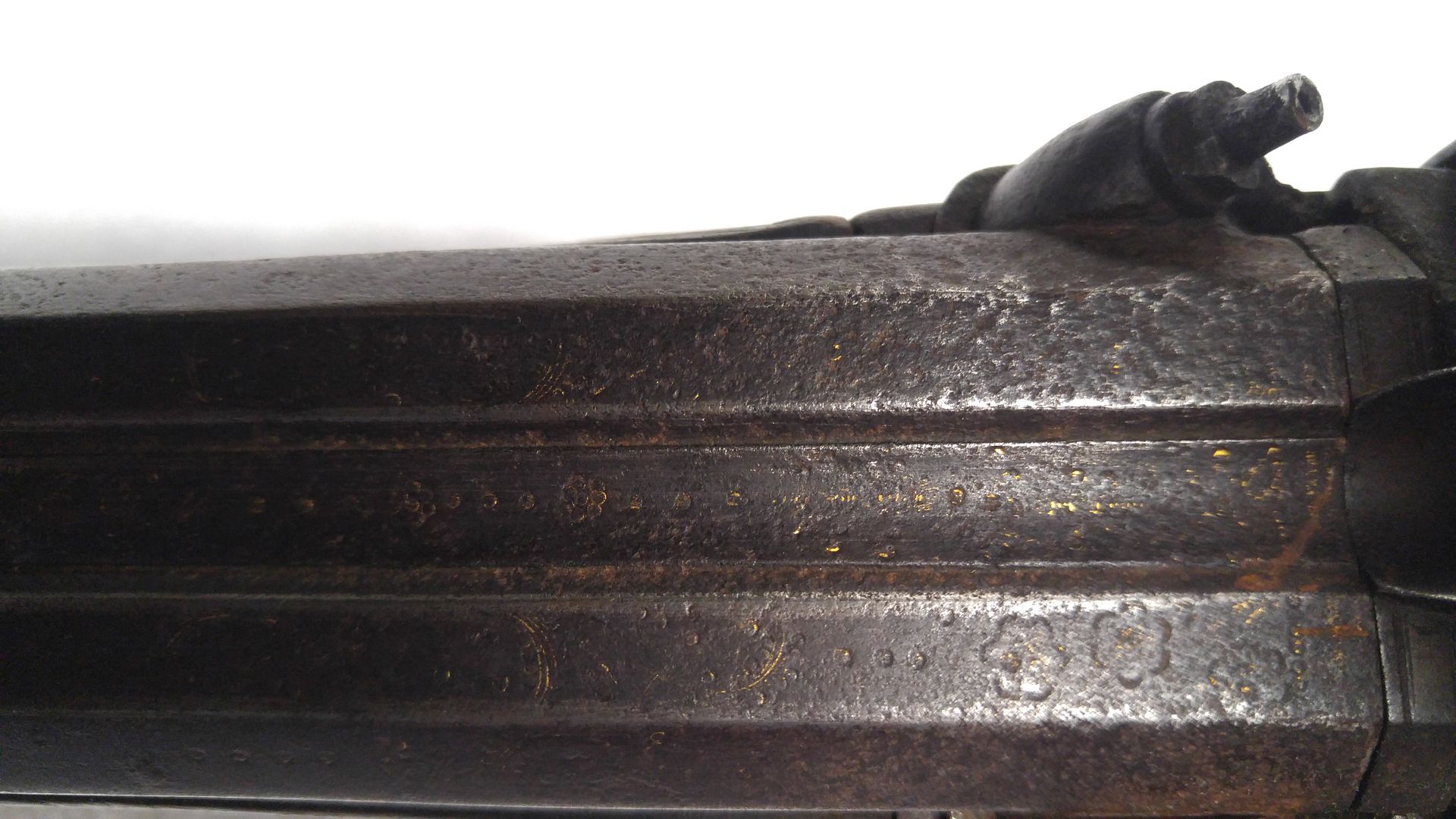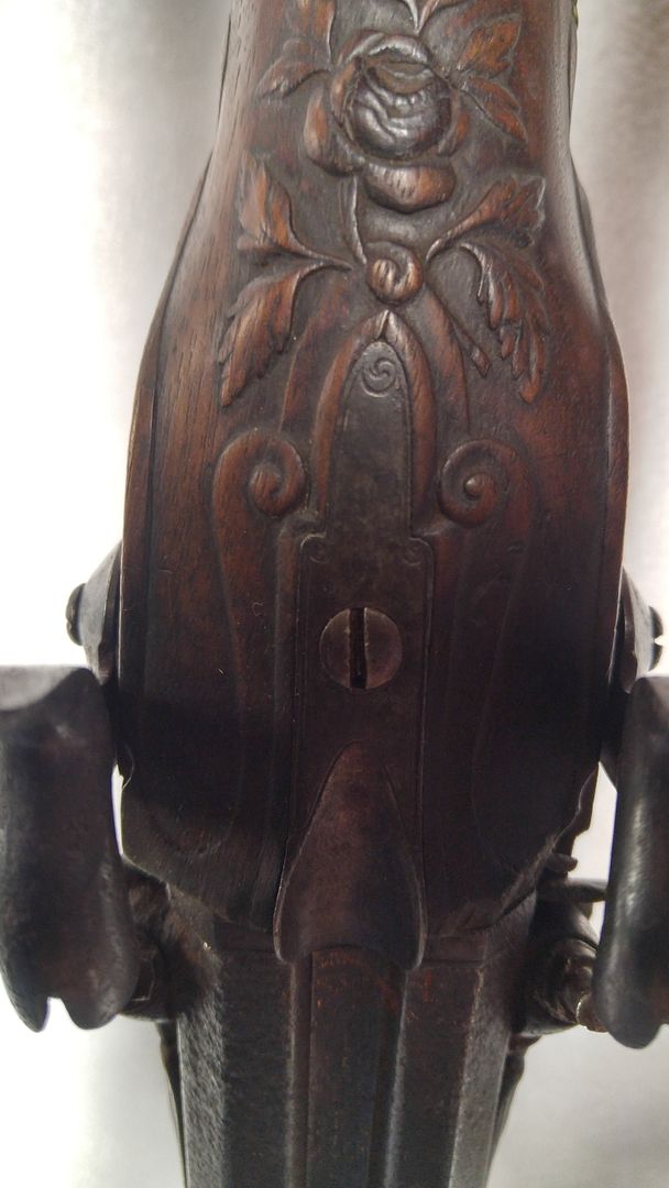I aquired this double barrel muzzle loader and know nothing about it. I have taken pictures of the markings. The barrels are 20 inches. It has roses and flowers carved in the wood and engraved into the top of the barrels. The barrels are half octagon and half round. They appear to be approximately .410 size. It also looks like the stock detatches from the pistol grip. Any help identifying and putting a value on it would be appreciated. Thanks