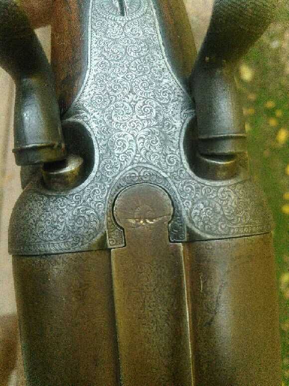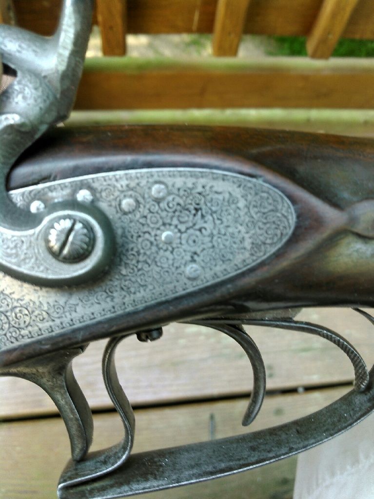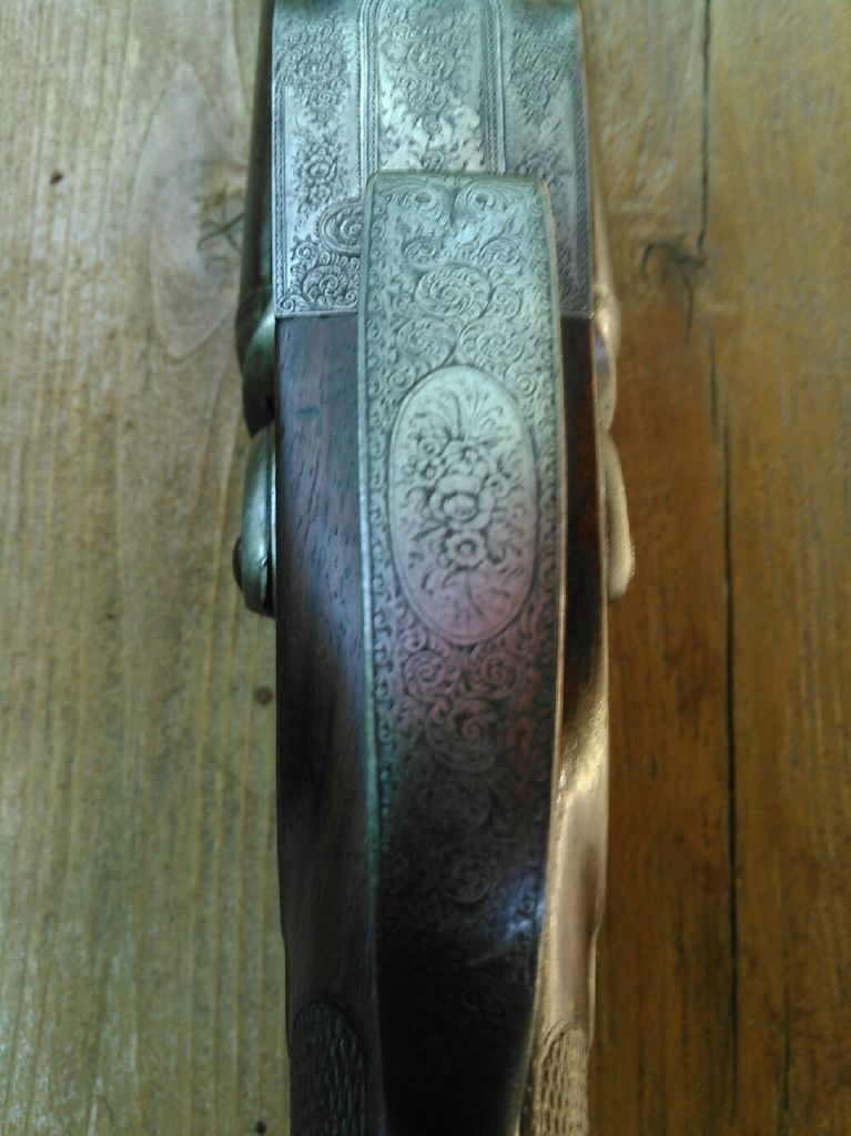 I think this is a clincher but I could be wrong. E envelopes both the C and J, and if rotated right there appears to also be an owl there staring back, although different from the modern version. Hammers pictured on gun are replacement hammers. One was missing and one is pictured above. Very intricate work on the original surviving hammer.
