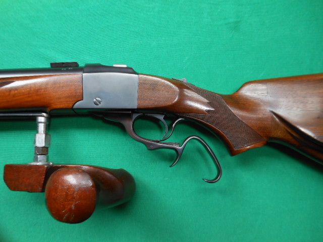 My dad got the rifle in the photos below at the last Fond du Lac Wisconsin gun show. It is a Ruger #1 with some custom features. It has been re-barreled to 30-30 Winchester and someone modified the buttstock to look like a Schuetzen rifle.