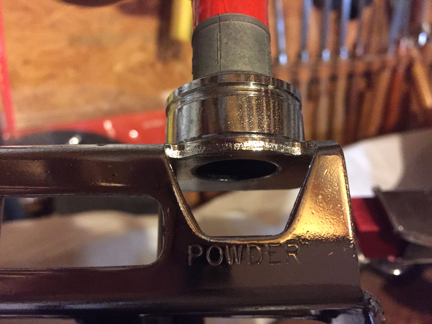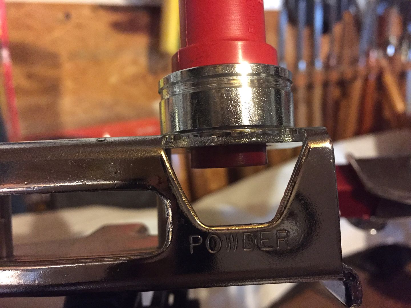 If you are using a very fine powder like Win. AA Lite you will have powder coming out between the baffle and bar on the grey one. Then you have to use the brass washer.