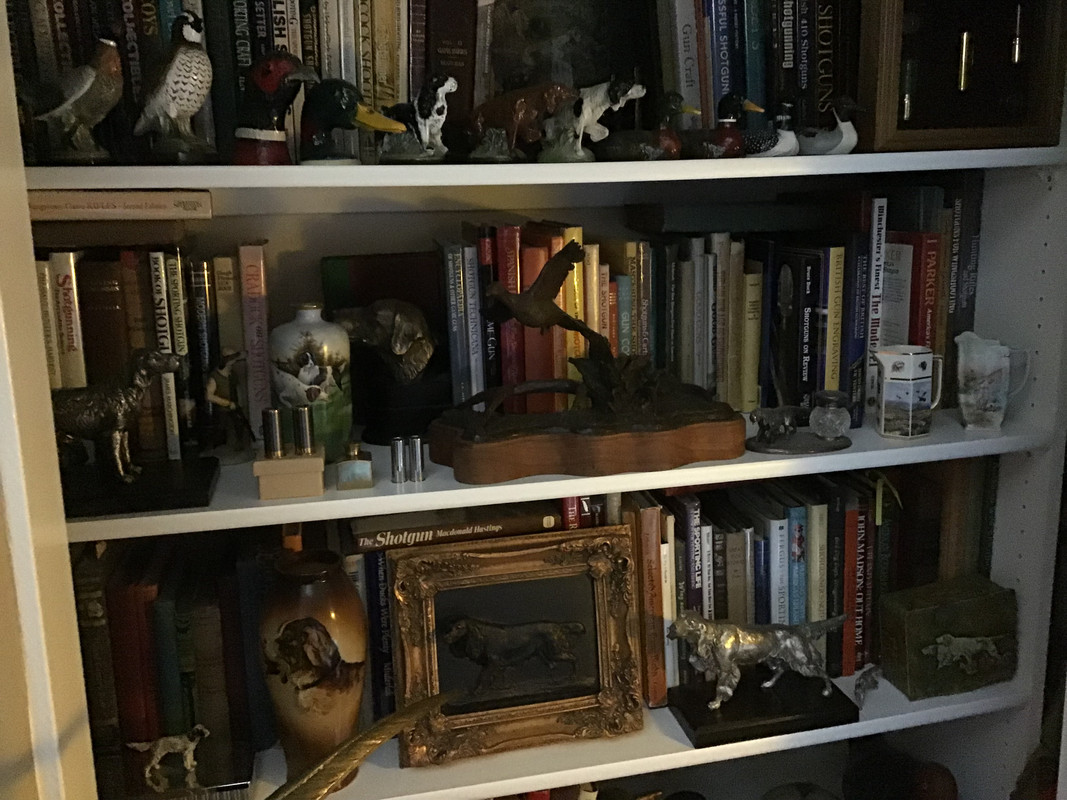 We have a tall set of bookshelves that I keep some things like that on in one room. It contains pictures of my Grandad, myself as a boy, the two fo us together, and my grandsons. Amongst those pics are memorabilia of parts of our outdoor past. Grandad's Pflueger Supreme reel, duck call and his huge old railroad padlock and key are there. There are a few unique prizes from shoots I've won, like a scrimshawed powder horn from the Charlestowne Longrifles club one year when they hosted the S.C. State M/L Championship. There are a couple full boxes of magnum paper duck loads by Grandad's duck call......... and other stuff. From time to time an item may be added. My wife has no issue with dusting it all. She does it once a week, along with every other "knick-knack" of hers in the house.