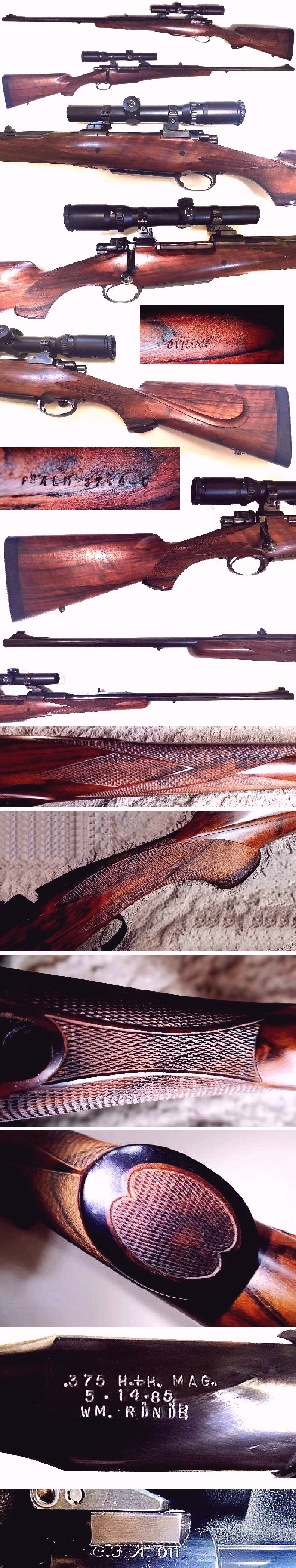 Its been a long time (almost a year) looking to add Brevex No. 19 to my collection. Of all my Brevex rifles, this is the first in 375 H&H caliber. And, its also my first rifle, of any make, with an original Maurice Ottmar Custom Stock. My pictured don't do justice to the quality of his work. The seller indicated the rifle came from, and was built by, Champlin Arms Co. The barrel is marked as such. The work is dated on the bottom of the barrel "May 14, 1985" built by William (Bill) Rinie who was Champlin's custom builder at that time.