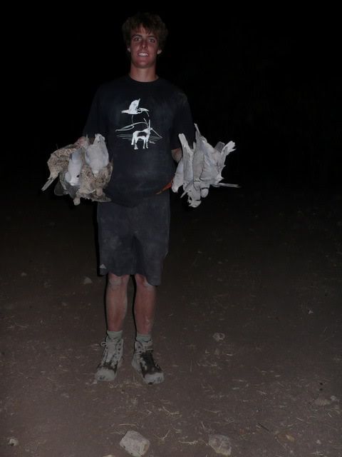 Some photos to illustrate Southern Africa    Nephew Norman with pigeons and sandgrouse Master Hunting Guide Mo Kashonga with duiker At the range practicing with the double rifle against balloons Regards