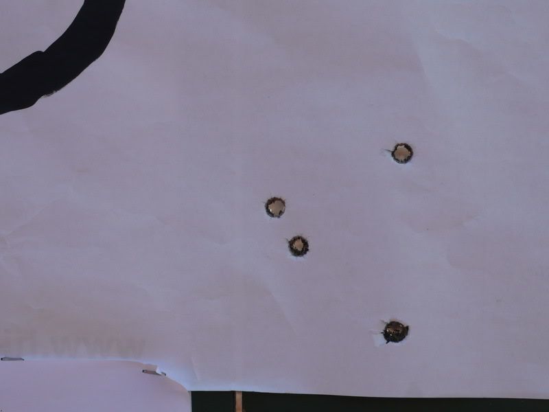 Gents, The rifle is by Joseph Just in Ferlach. It's a .375 H&H rimless magnum and did good service in the field. I myself would insist on a rimmed (flanged) .375 and had trouble with the ejectors on this one a few years ago. Some routine maintenance put them right. Longest shot was a gemsbok taken with the iron sights at 135 long paces. Quartering on, the beast dropped to a shot just inside the right shoulder. Key is a consistent placing of the bead in the back vee and recognition that, at a 100 the center of the composite group was about four inches to the right of where I aimed.  .375H&H rimmed 238gr head @100yards iron sights 2right and 2 left (take the scale from the size of the bullet holes 3/8 inch! Regards, Tim