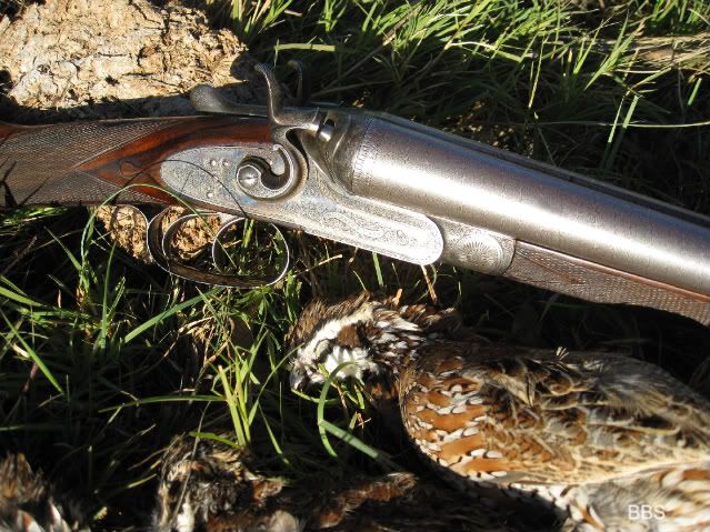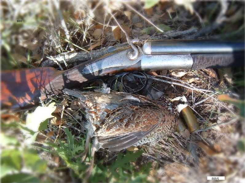 Here is my Purdey with the first Bob I took with it. I was shooting black powder in brass shells with 1 oz of 7-1/2s . I wasn’t sure I got him as it was hard to see through the smoke but little Molly found and fetched him. She had had a beautiful point on the covey and I wish I had taken the time to snap a picture. Taylor and Joe were back at the truck resting (Girly Men).
