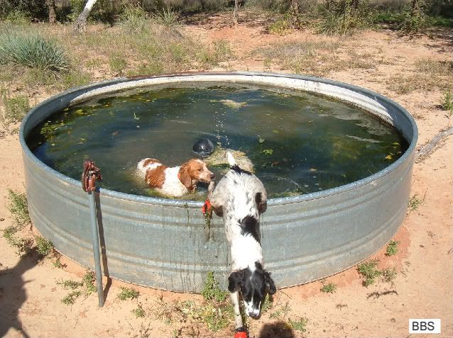 It was warm enough the dogs overheated quickly. The morning humidity seemed particularly hard on them. The afternoon was drier and they seemed to hit their stride. Here are Molly and Belle in the stock tank before lunch: