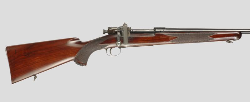 I'll be the first one to prove himself lacking in both knowledge and good sense. I think it's a Springfield NRA-type Sporter that has been restocked by a very good stockmaker, but I do not know who. It is probably one of the double heat treated actions. The Lyman 48 has a long slide. Since there is no telescope and the bolt handle has not been altered, the rifle probably dates from the 1920s. I would take out the bolt, check the bore under a good light and mumble something about "low number action, and not set up for a scope" and offer the chap $575. If he asked for more, I would go up to $650 and not feel as if I were too much of a gambler. If the bargaining went beyond $800, the owner could continue to own it.