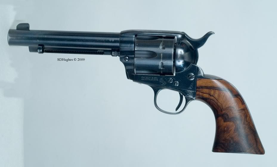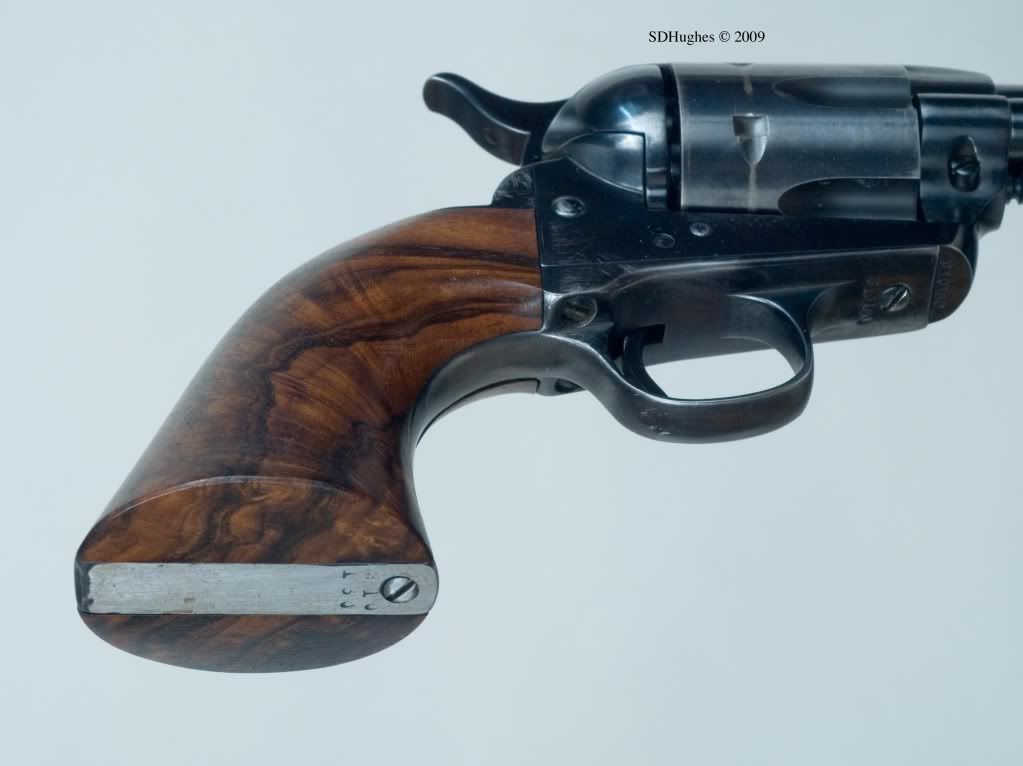 Brent, "Piano finish" usually refers to a very high gloss and is achieved with varnish or French polish. Michael, this is as far as I got! Bought the gun more than 20 years ago when I was infatuated with SAA's. It was the only one I could afford, a First Gen. with Christy .44 Special barrel and cylinder, my favorite caliber. Had a hole in bottom grip frame for strange grips. I don't think you could find a better layout for SAA grips, I looked at hundreds of pieces of wood, this one has no stain BTW and genuine one-piece not glued together grips. Hand polish and engraving were to follow. The S&W and NS sight ideas weren't in my dream, but I like the idea! And I've got the Patton holster from El Paso Saddlery! The best thing about it was the very valuable Colt books I bought a the time and still own!  It's not too late! although I've always wondered if it would letter to Pat Garrett!