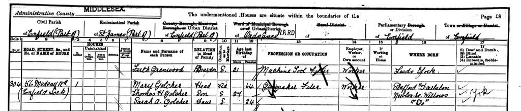1901 English Census. Mary Golcher, sister to James and Joseph Golcher.  Pete