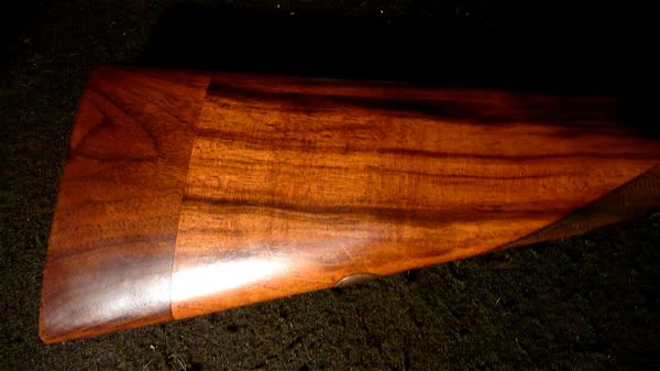 Mark Larson has just completed a "repair" of a plain stock extension on my favorite hunting gun. Thought you all would like to see his work. First two pictures are "before" and second two are "after" his work.