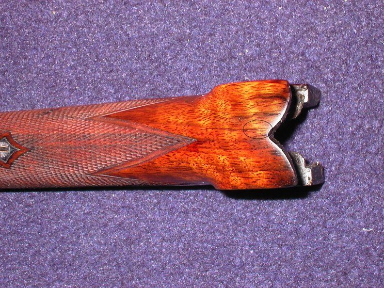 These are some of the photos that were left out. Fred Bowen inleted a sliver of wood where indicated in the forend.