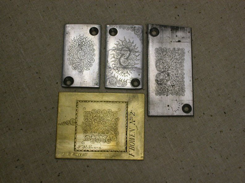 These are some of Fred's practice plates. At the time he had never done any English style engraving and was insistent on getting it right.