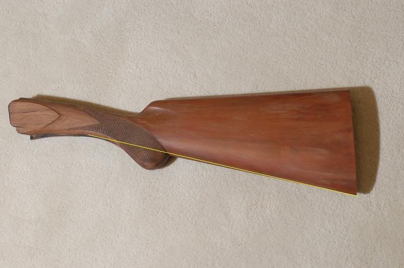 I would advoid the swan belly effect that I often see on straight stocks. Happens sometimes when a stock is bent to decrease total drop at heal. Looks like Dick Nixon's nose in profile. Some guns have this shape stock by design. I like nearly flat lines on my straight stocks. Makes the stock seem to flow into the gun like a fluid motion. Very graceful.