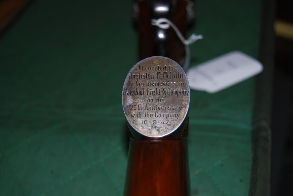 Several people have also stated Arnold Giebel. I tend to agree, now I have looked at pictures of engraved guns he did. The small trees on several other guns are identical. Does anyone know if Griebel worked or did work for Marshall Fields Co. during 1947?