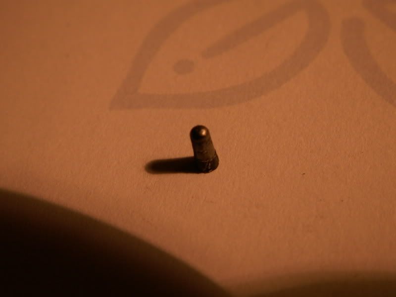 As you can tell from the title of this post, things might have gone better today with the MAC. Sparing all the suspense, I ended up buying a broken gun. Why you might ask, well, it was a friend selling it and he had never fired the shotgun. I put 75 rounds through it without any problems (a bit stiff to open with the Federal due to firing pin drag, but it loved the Winchester). After much fun with it, after taking the photographs, another friend closed the action and dry fired it and the right hammer pin broke. He doesn’t even realize he did this and I am not going to say anything (if not him, I would have likely done it). I hope there is some way to get this fixed without spending a whole lot of money, but I fear what with no surplus of MAC shotgun parts out there, such will not be the case. So, in sum, you might say a friend broke my friend’s gun, so I bought my friend’s gun. Now brushing off the fact that it is now a single barrel shotgun, and I am not entirely convinced of the robustness of this particular French side by side, here are the particulars. It does have 2 ½” chambers. I did elect to shoot the 1oz load when I saw the double proofs. The action was tight (it will hold the cellophane wrapper of a CD) and before shooting I tightened all the screws. The shotgun was very comfortable to shoot with these loads and recoil was moderate if not pleasant. The shotgun fit me very well and I was hitting with good regularity. I am not sure how to read the choke markings, but the gun did not appear to be over tight in the chokes (so they may have been opened up by a previous owner). I really enjoyed shooting this gun and I would like to get it working again. I am wondering if perhaps the broken hammer might be repaired or modified to take a Smith and Wesson type hammer pin. If a part has to be made, I would expect it to be a pricey prospect (unless some gunsmith was feeling charitable towards me and the old gun). If anyone has had a similar repair done quickly and cheaply, I would appreciate it if you would kindly share the contact information for who did the work for you. As promised here are the photographs:  Barrel markings:  Note: The oval proof is the Paris house. The N.A. with proof mark is for a non-assembled proof of the barrel. The second proof indicates the proof of the finished gun. I thought this interesting, a serial number on the stock:  Here is the broken pin (I got into the action, easy enough by the way, I found this part, confirming my worst fears):