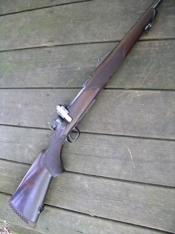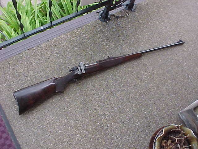 It's at the gun doctor for some wood surgery to repair where some Neanderthal cut out the stock for a bent bolt. All the metal is the wrong date and hot blued, everything will be replaced. The stock is cut for a Lyman 48 and the holes in the receiver are for a Redfield. What a mess but with some careful work will again be a nice rifle.