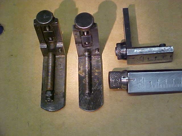 5 - long slide(60), 1/4-min clicks, full-block non-captive screw, prewar style knobs 6 - short slide(60 with flat bottom), 1/2-block, target knobs 7 - short slide as above with hunter/stayset knobs