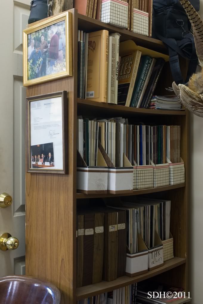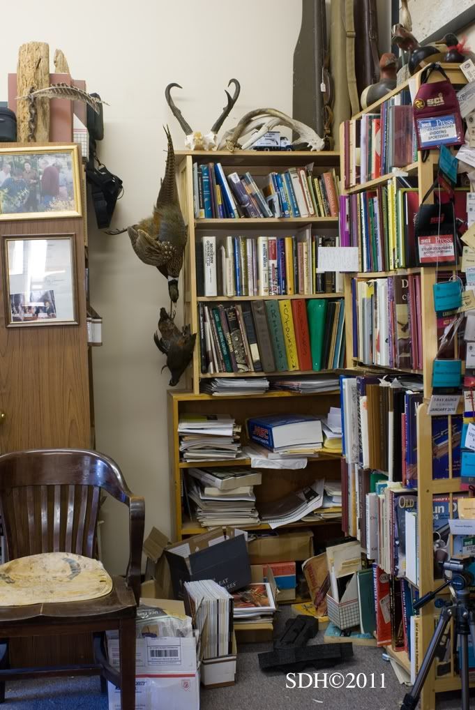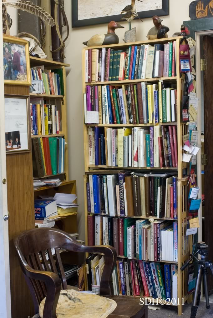 Thanks for your encouragement and kind words Jerry. I surely wish it were that easy, the publishing world has been turned upside down in the past few years and NOBODY knows where it is going, but everyone knows it is changing for sure. Almost all printing is done overseas, only potential NYT best sellers get any promotion, authors percentages have gone down and all expenses have gone up. My most recent "Double Guns and Custom Gunsmithing" has sold a total of 2400 copies since 9/07 and attempts to market through "big box" stores turned into a total snafu. Not bad, but certainly not enough income to bank anything or attract enthusiasm from publishing houses. Truth is at 10% of the gross sales it is difficult to be personally enthused... I continue to write twelve magazine columns per year (6, double shotguns for Shooting Sportsman - 6, custom rifle for Sports Afield, both columns are very popular) and accumulate material. In fact I have enough material for at least two complete books, three if you count M/L and historic gun material. In the meantime I have decided to put my extra energies into the website that now has nearly 50 separate pages of Finegunmaking material on quite a variety of topics. The views average nearly 90 per day from all over the world. With the addition of Dorleac & Dorleac we are presenting international small-shop gunmaking at its best and once winter returns to the north country (I'm not in a hurry living there myself!) the prime Custom Rifle Historic Wing (MP) should return with photos and content not available elsewhere. We have recently added a Viewer's Projects Page (please contribute) and Direct Requests for information from Michael Petrov <mpetrov@finegunmaking.com>. Each is slow starting but but I'm sure the momentum will build as has everything about the site. So Jerry, and all watching, please believe me when I say I would much prefer to read a book than surf the web or stare at a monitor, but I'm painfully conscious of current reading trends. Please bookmark us < www.finegunmaking.com> and be assured that I will be adding new material with authentic content and great photos on a variety of fine gun topics every chance I get, and that I am open to requests via Contact Me at the bottom of every page on the sight. Thanks again, Steve You bibliophiles might enjoy three views of the Office Wing of the Fine Gunmaking Library.