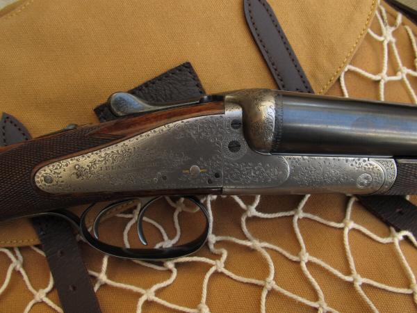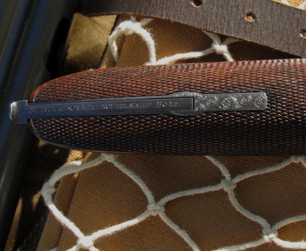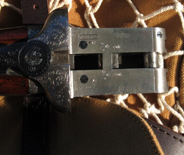 It has been restocked at some distant time with a rather plain piece of wood but that is no bad thing for a day to day gun. Barrels are original length but are TIG sleeved steel to damascus, 2 3/4" chambers and 0.010" & 0.020" chokes with long forcing cones. Weighs about 6 1/2lb. Serial no. 5702.