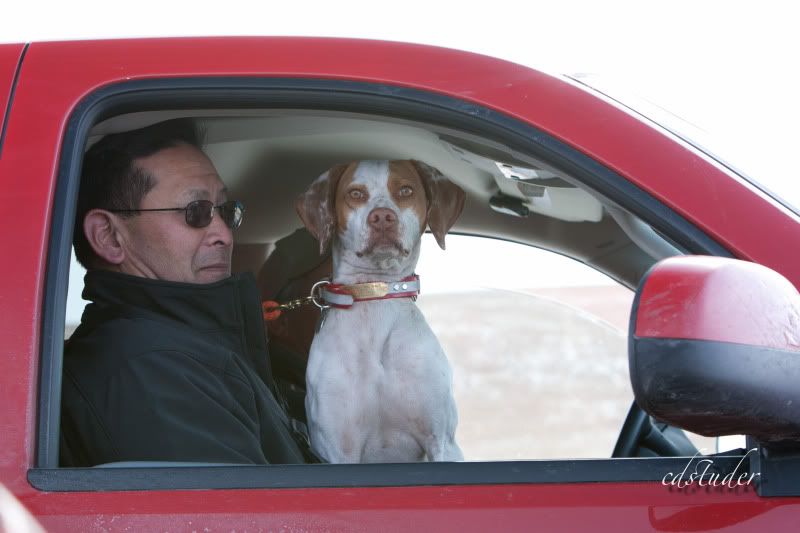 "hoo hoo! Glad I have this thick coat. That Ethiopian Pointer must be freezing."