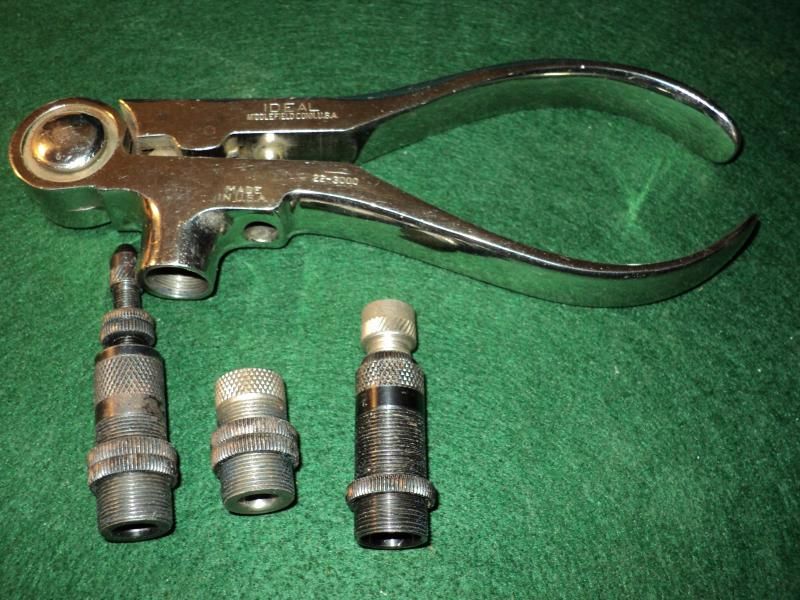 One thing I like to do when I get a rifle for an obselete cartridge is try to put together a shooting kit with the old tools. This is a Ideal, I believe No.3 loading tool marked "22-3000" with the tool are three dies, the neck sizing die is marked "173" the bullet seating die is marked "165" and the inside neck sizing die is marked "223". I'm not sure what dies original came with the tool and what the number is for the de-capping die and stem. Does anyone have a reference to the die numbers for these?