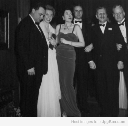Here is a 1950 photo at a family reunion, he is on left and the lady in the dark gown is his wife Frances.