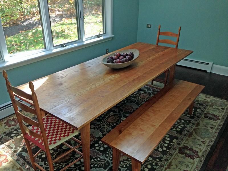 I don't mean to take the topic away from the original poster, but since the topic has gone to figured wood here is a table and benches I made for my son in November using curly cherry.   After 12 coats of a blended oil finish.