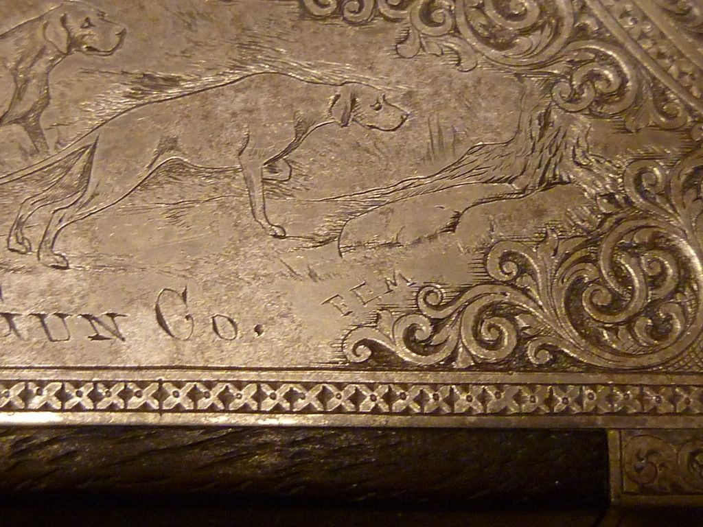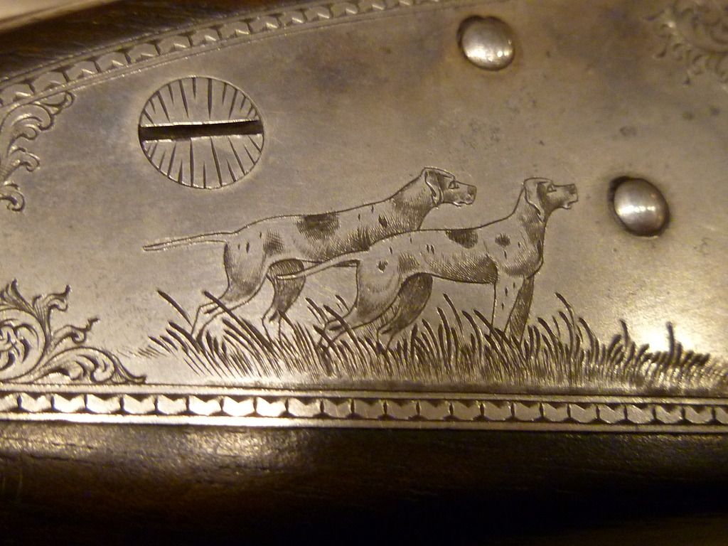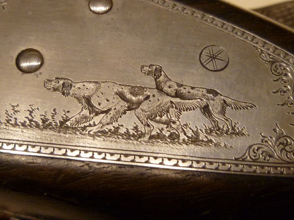 I offered more photos on Nudge's Lefever engraving post. This doesn't answer his question and the thread moved on to other topics. So here are some fresh dogs. I am not personally looking for answers or implying that all dog engraving should be judged as Loy/ Not. Just posting photos for enjoyment/ appreciation. #1 setter  #2 setter  #3 pointer  #4 pointer  #5 Setter  #6 Setter  #7 Setter  #8 Pointers