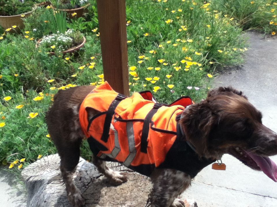 Before Annie goes hunting I double vest her, one vest protects her chest and the other her back. She is fearless when going through Russian Olive thickets and blowing through barbed wife fences. Prior to double vesting her she has been to the vets to get sewn up way to often. This is Annie double vested and ready to go. Last winter a hunting buddies wife bought a winter vest for their Springer and when she discovered that the vest was to small, she gave it to us for Annie. Annie accepts wearing vests and my wife put her new winter vest on Annie and went for a walk in the snow. The next morning as I was putting on a winter coat getting ready to feed our stock, Annie put a paw on my leg and nosed her winter coat. All last winter and before going outside, Annie made sure that she was decked out in her new winter coat.