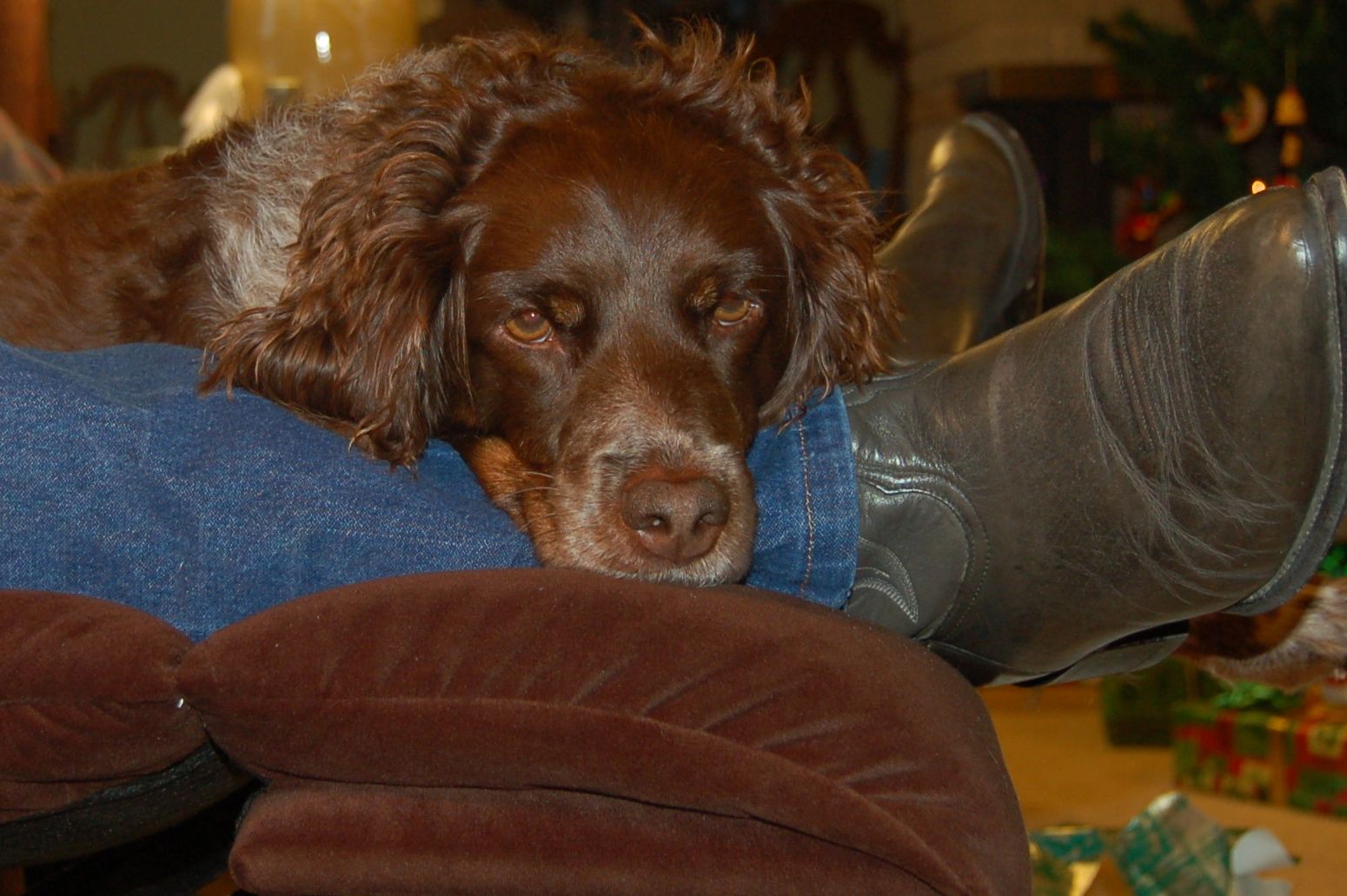 That's one badass dog, taking on a squirrel. Those incisors are something dangerous. And smart, too: taking one of the 3 best spots in the house: (1) the warm spot on the rug in front of the fire, (2) alongside your chair or (3) on the couch. Went to a hunting camp a few years back and my dog managed 2/3: she lay on the couch next to the Franklin stove.
