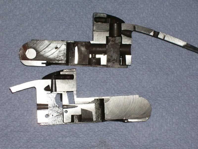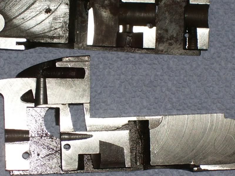 I sectioned the action some more on the 16 gauge. While slitting and milling it became evident that the action was very hard where the water table meets the standing breech. I believe its due to the metal being thinner in this location than anywhere else. If any one can use this sectioned action for a article or teaching purposes i will send it to them free of charge as long as it will be used for a good cause. If any one interested speak up. [img][/img]