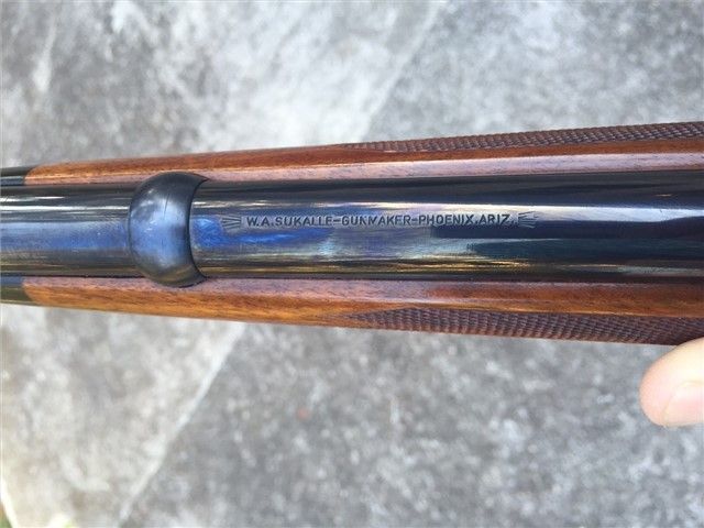 I do not think Shelhamer would have accepted the job if someone asked him to do something like that. The inletting looks remarkably good compared to the outside of the stock. While it does have some Linden features, his inletting is not that good as a rule. It really looks like a 50's gun, and Linden would have been gone by then. You may be able to get a clue by looking at the custom gun section in the Gun Digest books. Anyone know when Sukalle began making barrels?