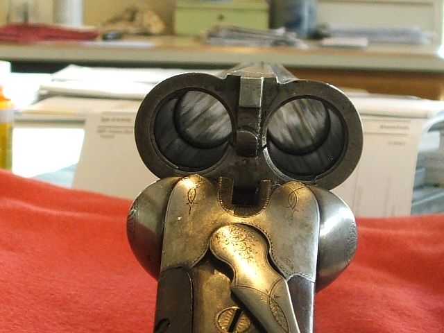 More pictures of the L C Smith double: It's very overcast here today and I'm having more problems than usual taking pictures. The bores in the picture I provided look rifled but they are smooth and shiny. As I indicated above there are no dents or real pitting. I'll take and post additional pictures when the situation improves. I have not decided at this time whether to keep or sell this shotgun. Jim