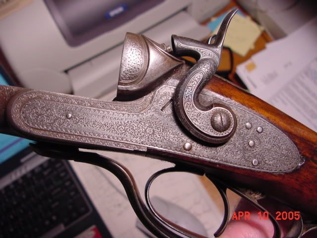 I hope Bill McPhail or similar persons familiar with some of the earlier American guns sees this. He has one with fence treatment similar to this--I think Patrick Mullen based on a W & C Scott action as I recall from the 1860s.